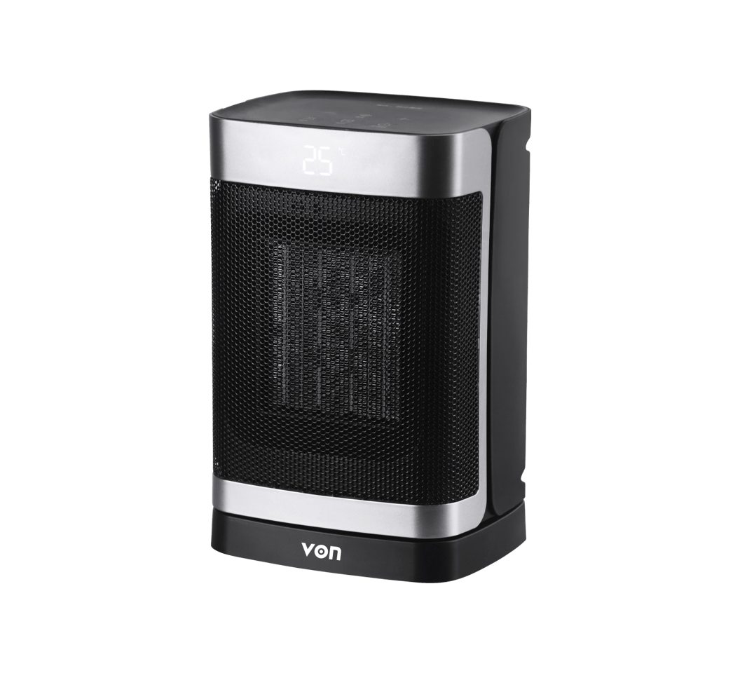 VHC153DYAK VON CERAMIC HEATER PORTABLE HEATER 2 HEATER SETTINGS WIDE SPREAD OSCILLATION OVER HEAT PROTECTION RAPID HEATING TOUCH CONTROL DIGITAL DISPLAY ADJUSTABLE THERMOSTAT TOWER DESIGN BLACK